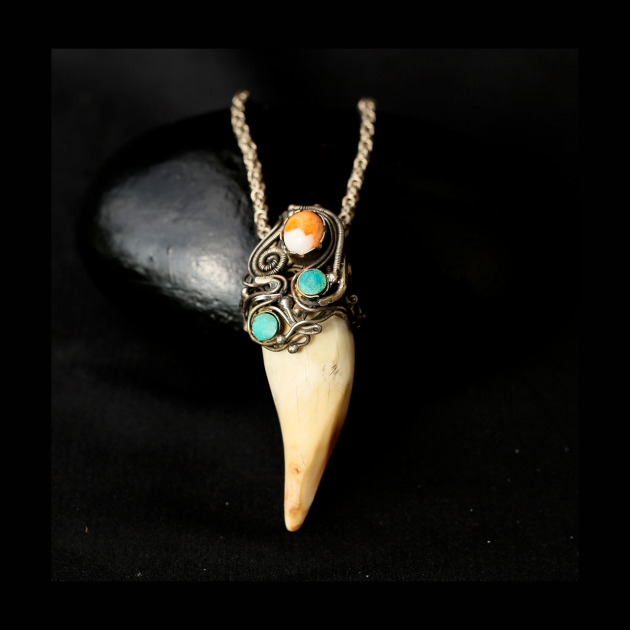 Sea lion tooth STEAMPUNK Gears chryzacolla and spondylus stone