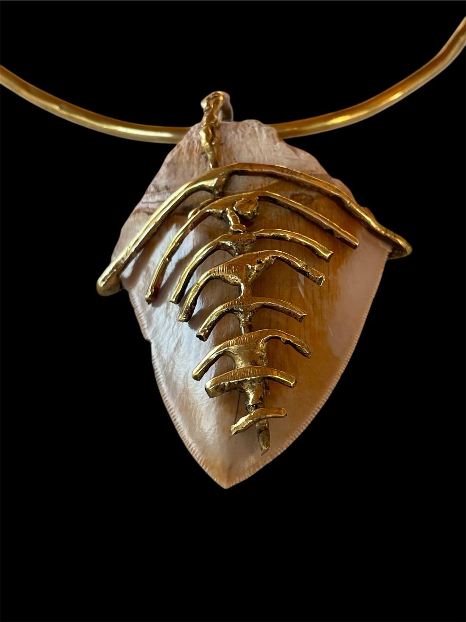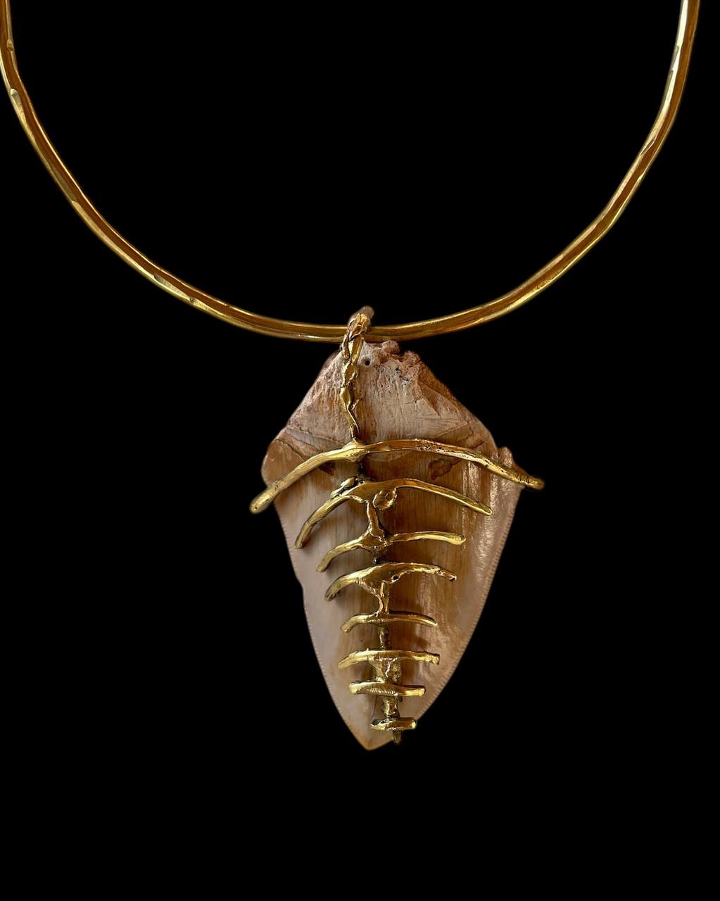Be the first to review “Megalodone Shark tooth bronce pendant bones design”