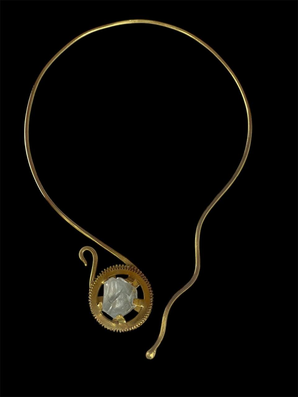 This pendant is made from ANTIQUE watch pieces and raw celestite stone. Just one copy.