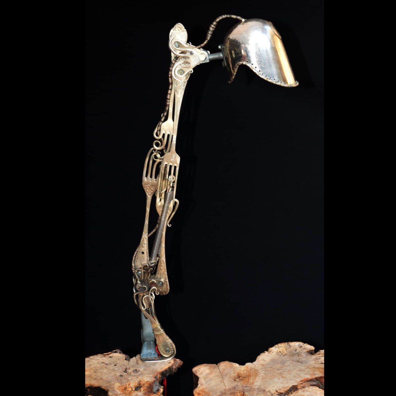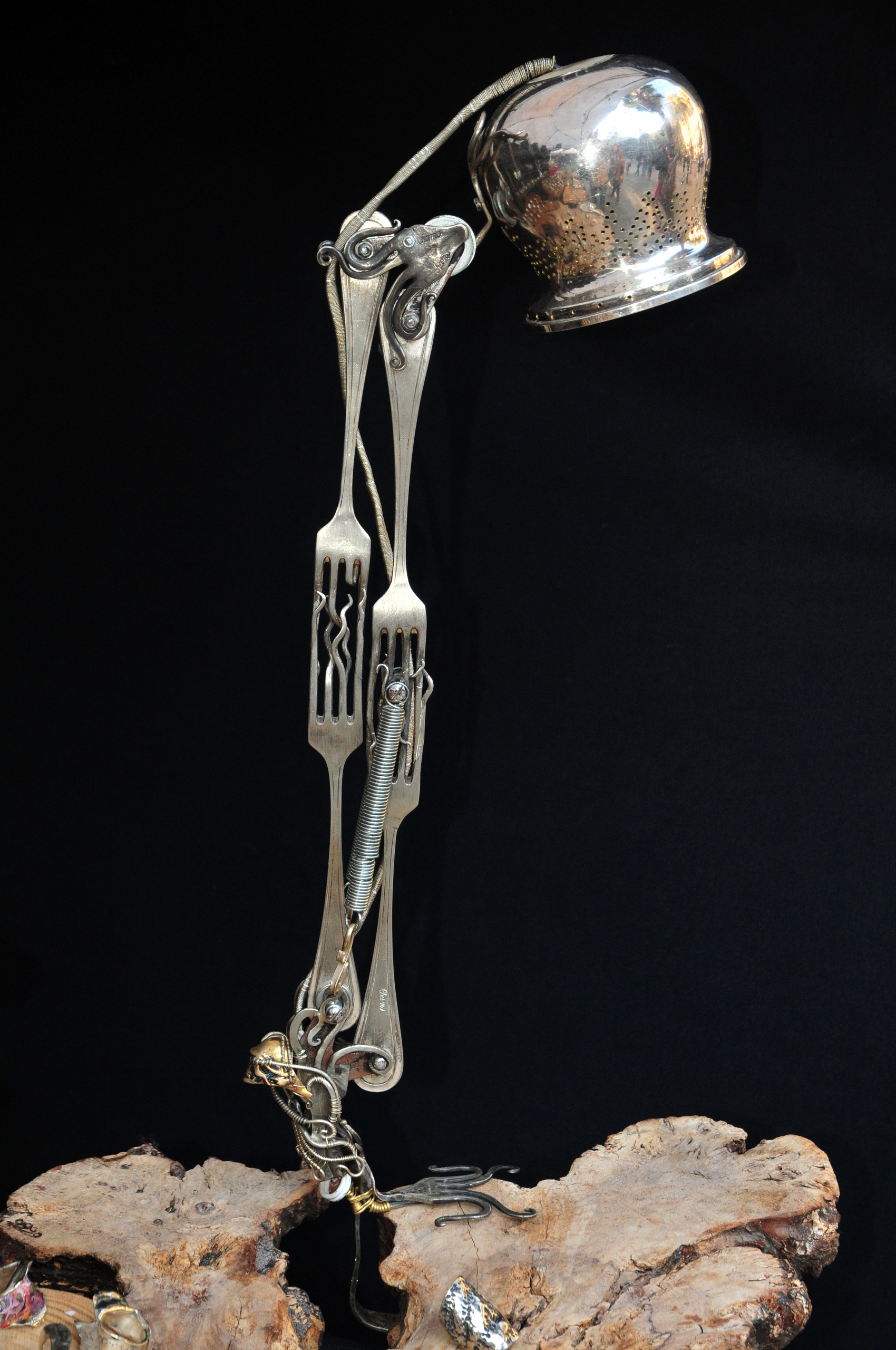 Sculpture made with old silver plated forks and ladles.