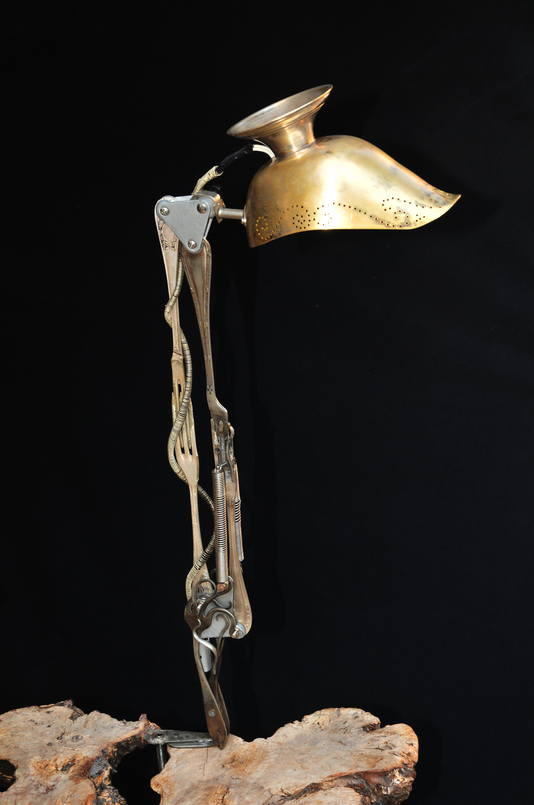 Sculpture made with old silver plated forks and sauceboat.
